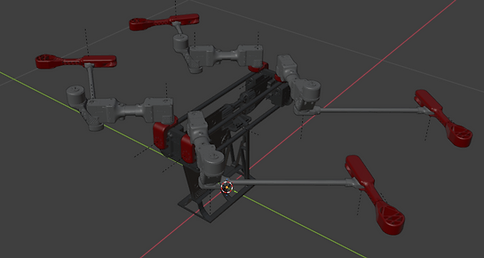 The main robot I work on in my lab is the Husky-Beta multimodal quadruped. It has a Jetson Orin Nano on board as the computer, capable of running RL policies in real time at 250 Hz. It also uses Dynamixel Servos to actuate the joints. Shown here is the robot in walk and flight phase. It is able to switch between these seamlessly using the stand that is attached to the body.